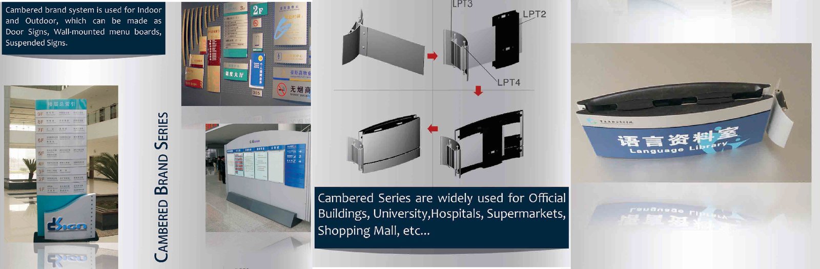 Modular Sign System. Plane Modular Sign System.Curved Modular Sign System. Light Box System. Building Index Sign System. Outdoor Pylon Sign System. Picture Frame. Acrylic Sign System. ATM SHADE
